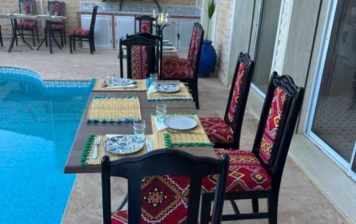 Nous avons passé un super séjour. Notre chambre et toute la maison étaient très joliment décorées. La vue depuis la chambre et la terrasse est à couper le souffle et la piscine offre un rafraîchissement bienvenu ! Il convient de souligner en particulier le personnel agréable, simple et authentique. Les hôtes (Driss et sa famille) sont extrêmement accueillants. On se sent chez soi. Enfin, le petit déjeuner avec vue panoramique était délicieux. Merci pour le superbe séjour !
