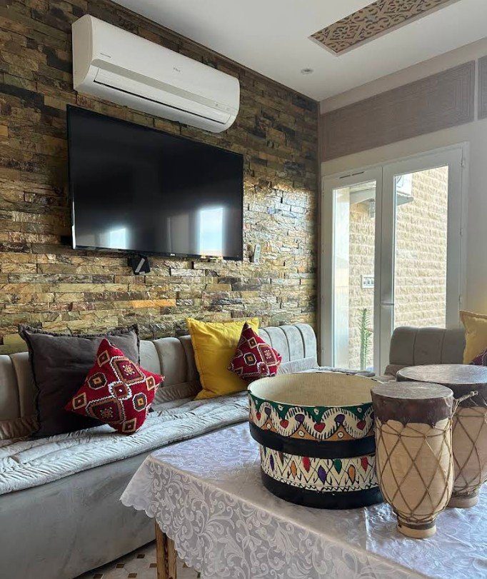 Nous avons passé un excellent séjour dans ce magnifique logement. Il est tout neuf et le personnel est toujours là pour vous. Communiquer avec le personnel a été un peu difficile pour nous, ils parlent français et arabe et nous non (ou très peu). Heureusement, Translate est là pour vous ! Trouver l'endroit a été un peu difficile pour nous, il n'y a pas vraiment de routes. Néanmoins, nous sommes très enthousiastes et recommandons à tout le monde de séjourner ici.